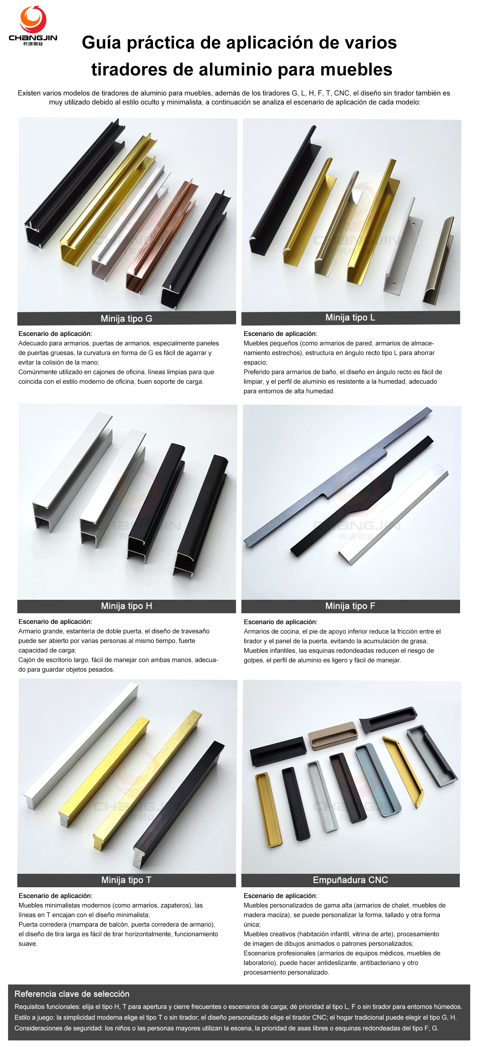 Guía práctica de aplicación de varios tiradores de aluminio para muebles